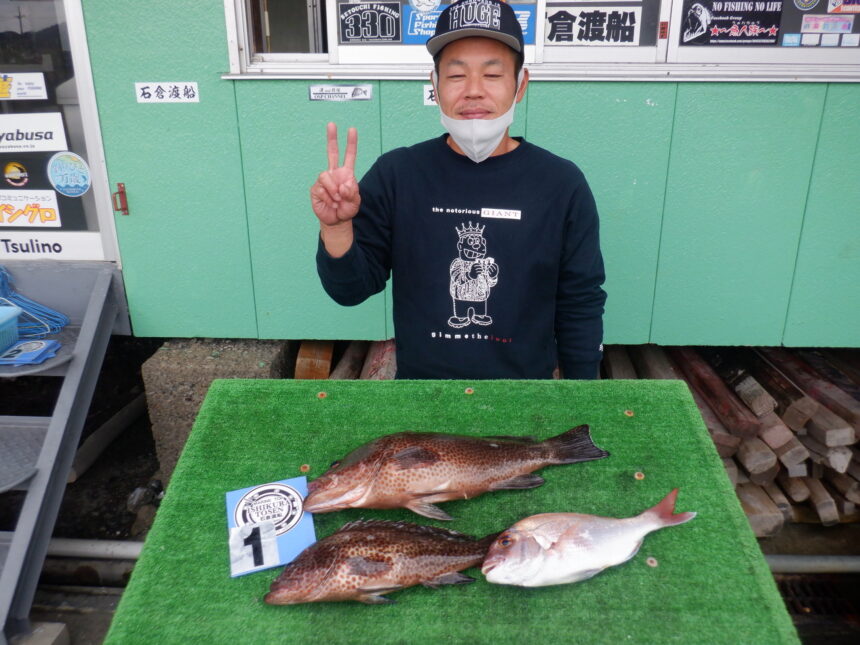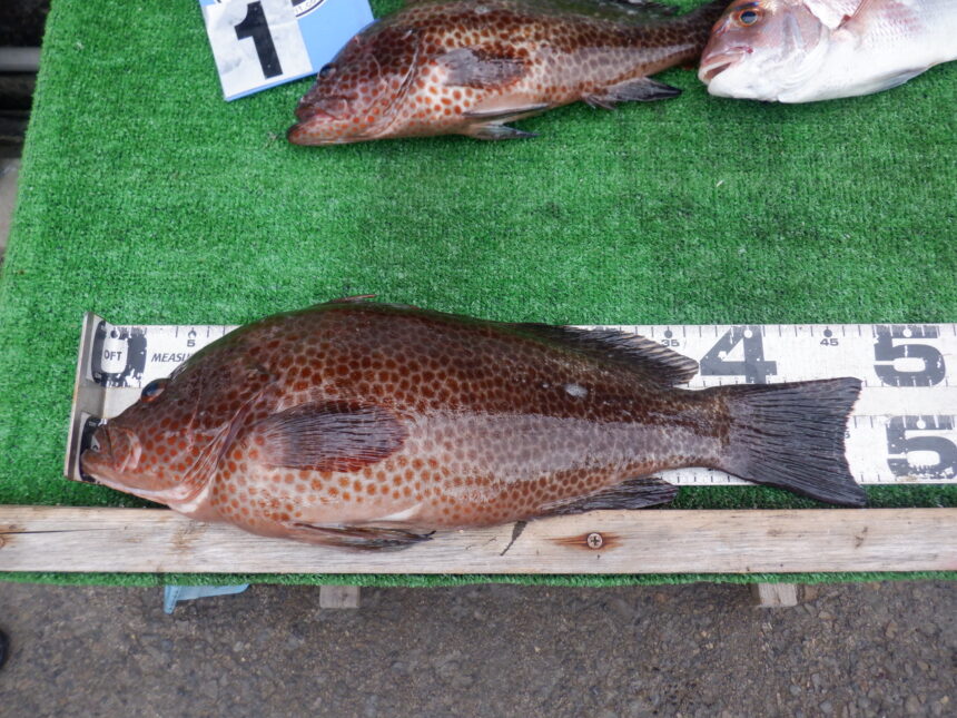 船外機ボートで水口さんがオオモンハタ47cmまでとマダイをゲット。