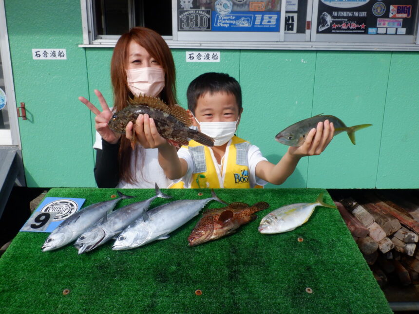 船外機ボートで倉田さんがツバス、アカハタ、グレをゲット。