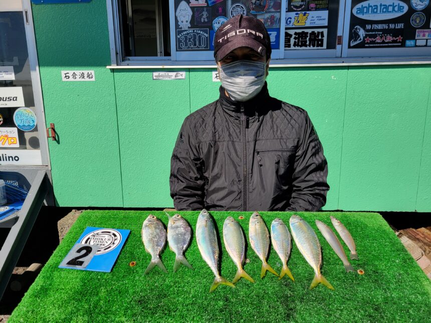 手漕ぎボートで安西さんがアジ、サバ、キスをゲット。