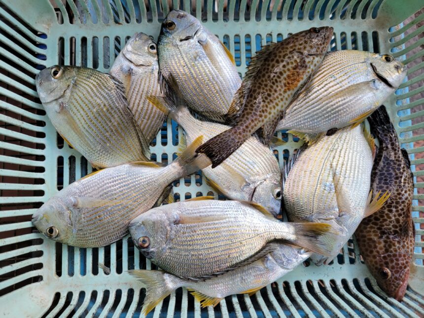 カセ釣りで水本さんがヘダイ、オオモンハタをゲット。