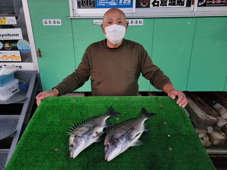 カセ釣りで伊藤さんがチヌ40cmまでゲット。