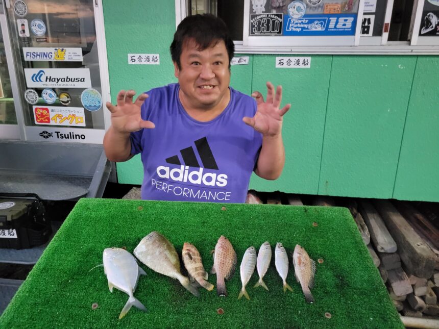 カセ釣りで岩本さんがアイゴ、アジ、オオモンハタをゲット。