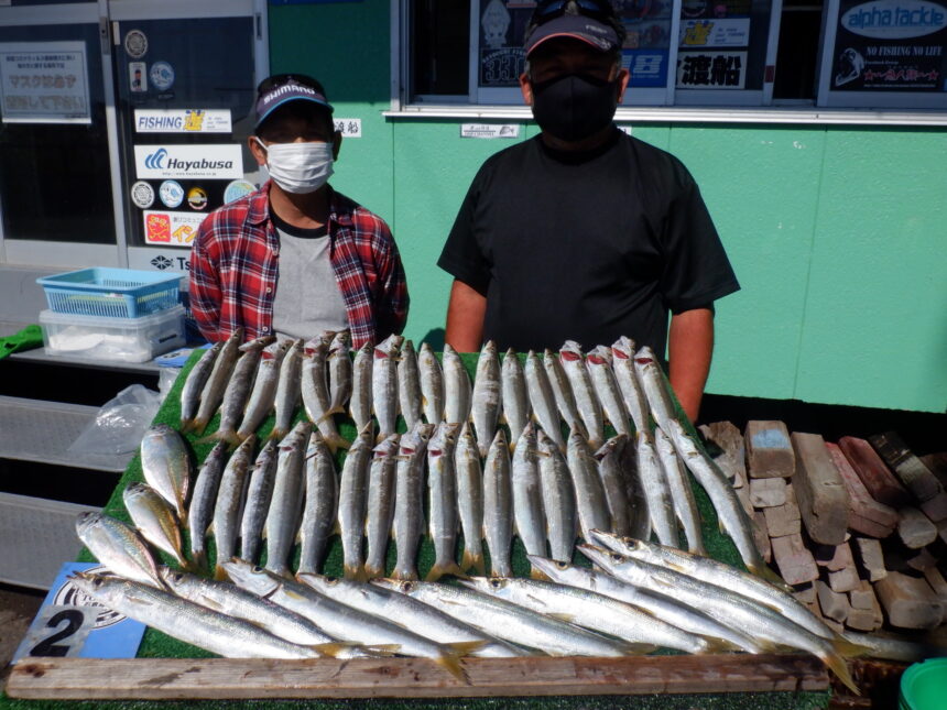 船外機ボートで竹田さんがシマアジ、シイラ、イサキ、ツバスをゲット。