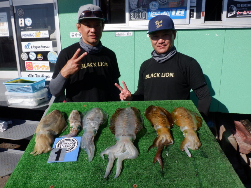 船外機ボートで井上さんがアオリイカ1.18キロまでゲット。