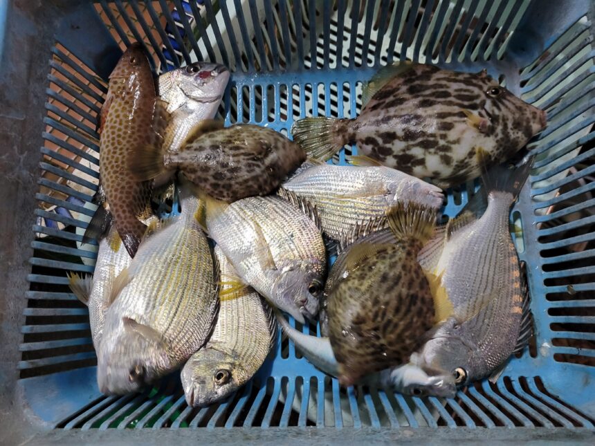 カセ釣りで中尾さんがヘダイ、カワハギ、オオモンハタをゲット。