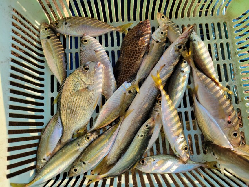カセ釣りで橋尾さんがアジ、カマス、ヘダイをゲット。