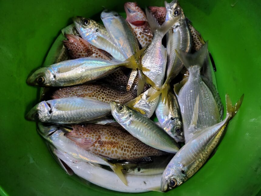 カセ釣りで伊藤さんがアジ、オオモンハタをゲット。