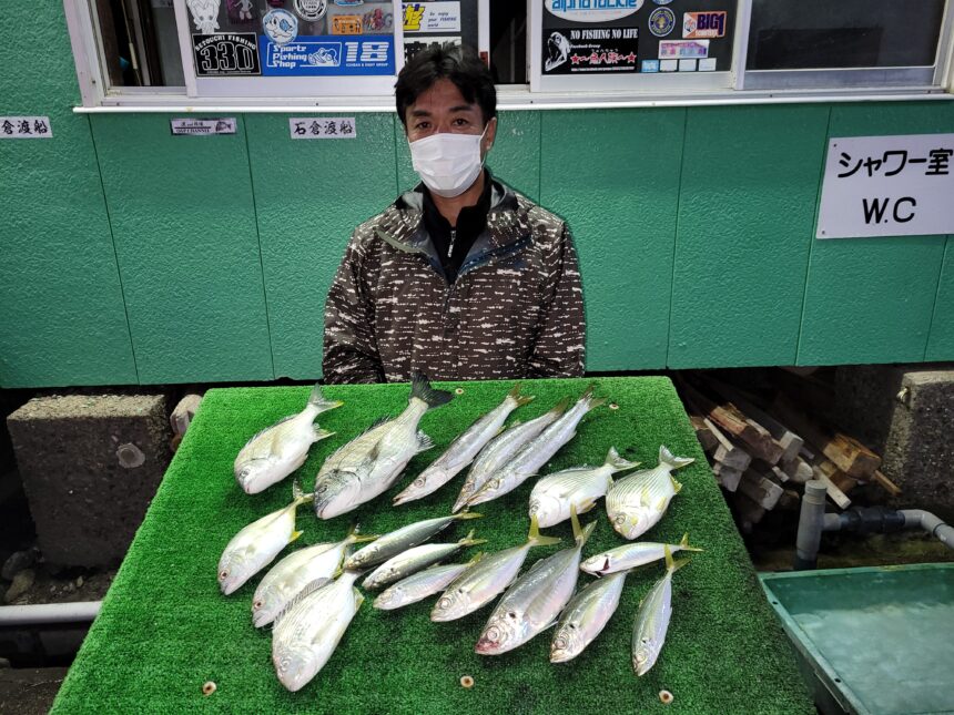 カセ釣りで加藤さんがチヌ、キビレ、アジ、カマスをゲット。