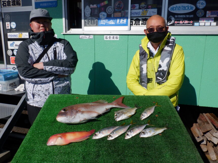 船外機ボートで高木さんがマダイ、アジ、ヘダイをゲット。