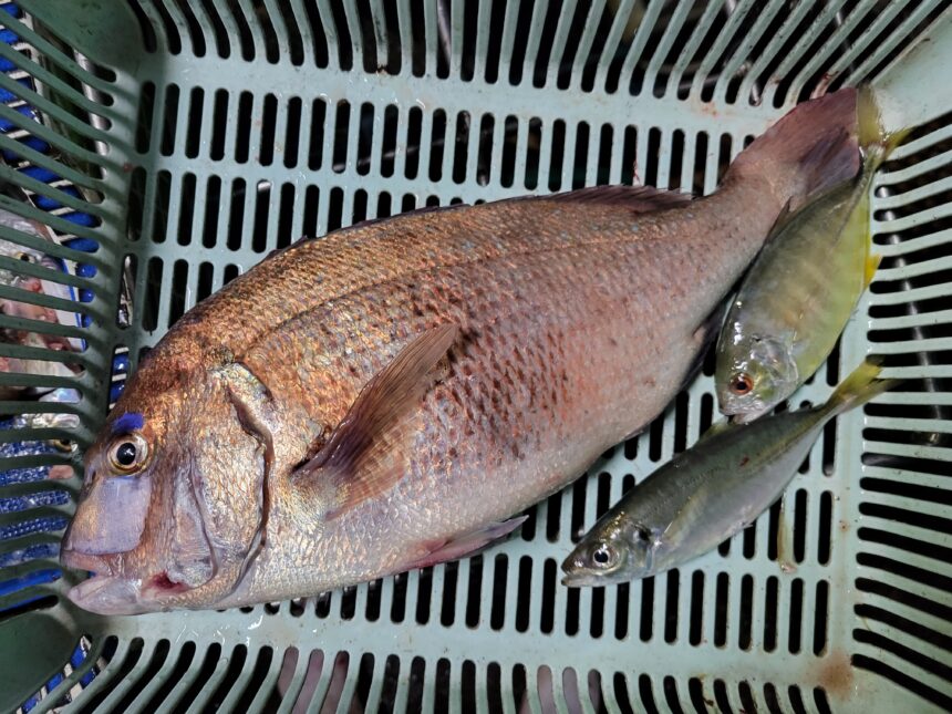 カセ釣りで中濱さんがマダイをゲット。