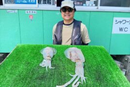 手漕ぎボートで石川さんがアオリイカ920gまでゲット。