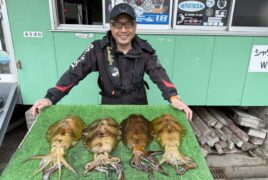 船外機ボートで康田さんがアオリイカ1.2キロまでゲット。