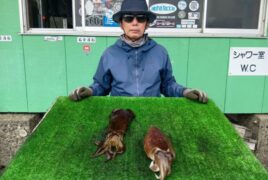 船外機ボートで小山さんがアオリイカ、スミイカをゲット。