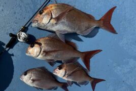 船外機ボートでマダイをゲット。