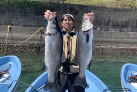 船外機ボートで水野さんがオオモンハタ、ツバスをゲット。