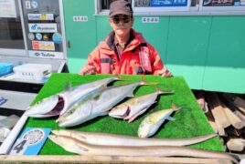 船外機ボートで大威さんがサゴシ、マトウダイ、アジをゲット。