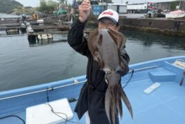 船外機ボートでしんちゃんがアオリイカをゲット。