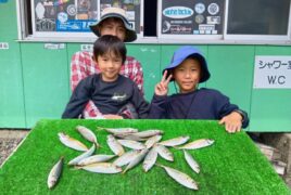 手漕ぎボートです牧野さんがアジ、イワシをゲット。