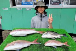 船外機ボートで大威さんがサゴシ、マトウダイ、アジをゲット。