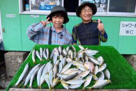 手漕ぎボートで安藤さんがカマス、アジ、サバをゲット。