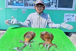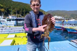 手漕ぎボートで浜島さんがアオリイカをゲット。