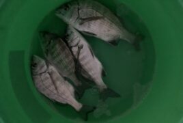 カセ釣りで水本さんがチヌ43cmとキビレをゲット。