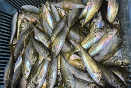 カセ釣りで丹羽さんがチヌ44cm、アジ、サバ、カマスをゲット。
