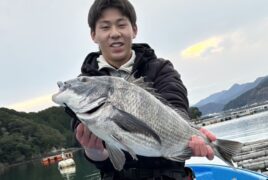 カセ釣りで青木さんがチヌ57㎝をゲット。