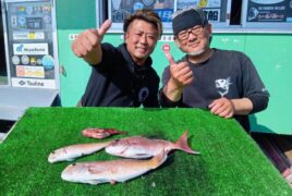 船外機ボートで進士さんがシロアマダイ、マダイ、カサゴをゲット。