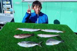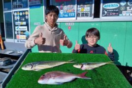 船外機ボートではると君&しゅうと君がマダイ、シイラをゲット。
