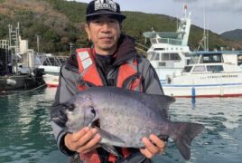 船外機ボートで石島さんがマダイ&クロダイをゲット。