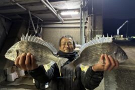 カセ釣りで三輪さんがチヌ42㎝をゲット。