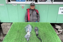 船外機ボートで真木さんがマダイ&アオリイカをゲット。