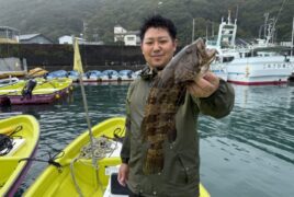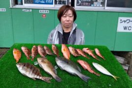 船外機ボートでミコちゃんがグレ、カサゴ、タカノハをゲット。