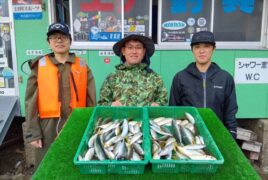 船外機ボートで浦越さんがウマヅラハギ、カタボシイワシをゲット。
