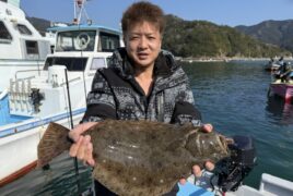 船外機ボートで高木さんがマダイ、カイワリ、ガンゾウヒラメをゲット。