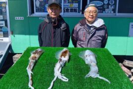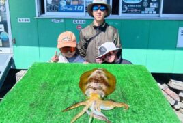 船外機ボートで森本さんがアオリイカ1.3キロをゲット。