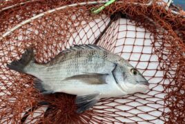 カセ釣りで亀谷さんがチヌ46㎝をゲット。