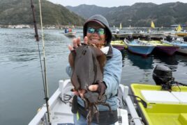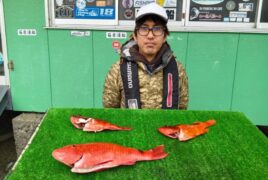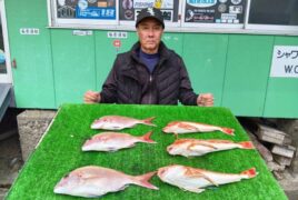 船外機ボートで岡部さんがマダイ、ホウボウをゲット。