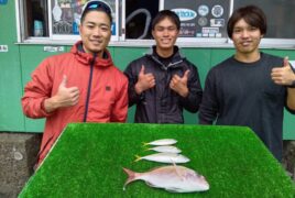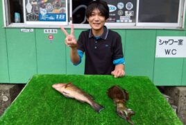船外機ボートで松場さんがマダイ、アジをゲット。