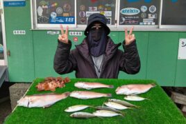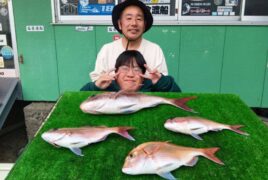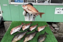 船外機ボートで北川さんがマダイ、イサキ、グレをゲット。