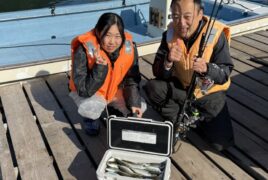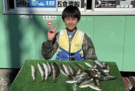 手漕ぎボートでときむね君がアジ、カマスをゲット。