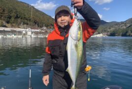 船外機ボートで市場さんがワラサをゲット。