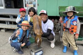 手漕ぎボートで津田さんがアオリイカ1.34キロまでゲット。