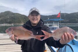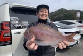 船外機ボートで北方さんがイシダイ66㎝、マダイをゲット。