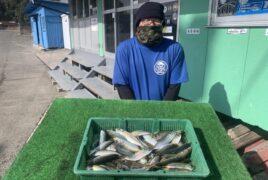 船外機ボートです山崎さんがアジをばゲット。