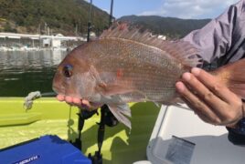 船外機ボートで仲井さんがマダイをばゲット。