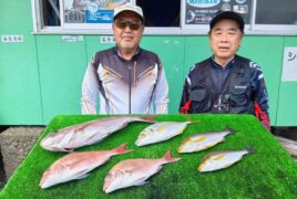 船外機ボートで三輪さんがイシダイ64cmまでとグレ、アカハタをゲット。