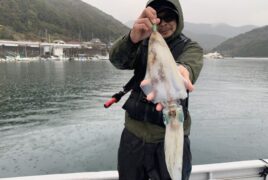 船外機ボートで赤坂さんがアオリイカをゲット。