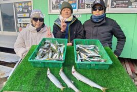手漕ぎボートで辻本さん&山川さんがアジ、カマスをゲット。